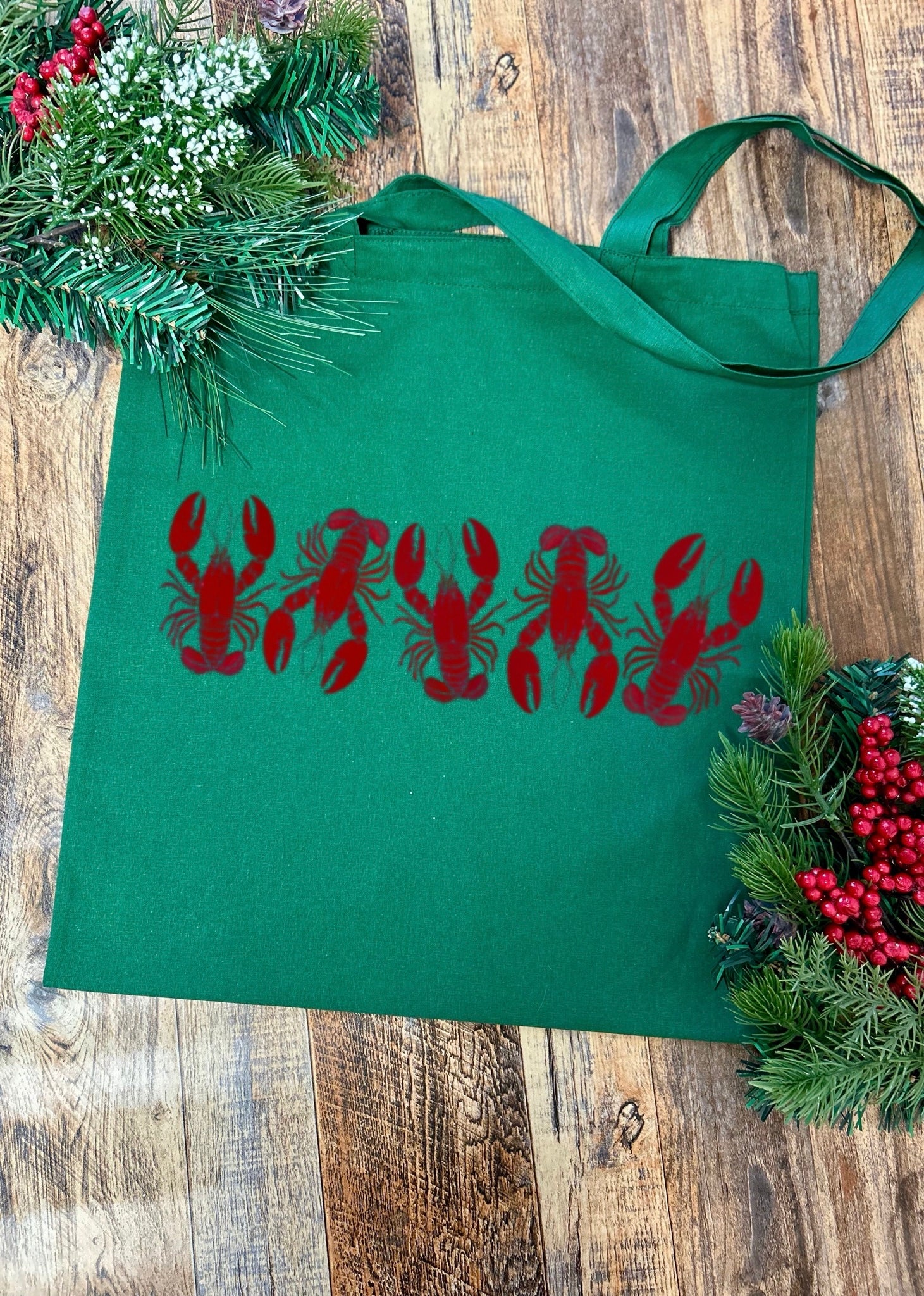 Little Lobsters is a red plastisol ink heat transfer decal. Decal may print lighter or darker than photo.